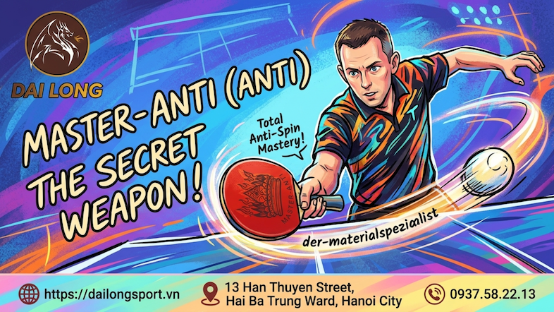 Dựa trên các nguồn thông tin đáng tin cậy từ mạng, dưới đây là tổng hợp chi tiết và chính xác nhất về mặt vợt Master-Anti của thương hiệu Der Materialspezialist (một công ty Đức chuyên sản xuất mặt vợt bóng bàn chất lượng cao, được thành lập bởi ông Guido Heun). Sản phẩm này là loại mặt vợt anti-spin (chống xoáy, không ma sát), được thiết kế dành cho người chơi phòng thủ kỹ thuật cao, tập trung vào việc tạo hiệu ứng rối loạn và kiểm soát tốt. Tất cả thiết bị của Der Materialspezialist đều được ITTF (Liên đoàn Bóng bàn Quốc tế) phê duyệt và phù hợp với bóng nhựa. Sản phẩm có mã phê duyệt ITTF: 118-014.